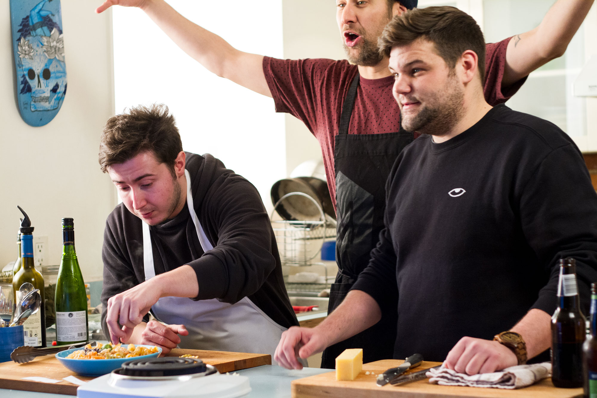 Le 27 novembre dernier, la cuisine de Bob le Chef LIVE s’est transformée en salle de classe pour humoristes, le temps d’un épisode. C’est ainsi qu’on a proposé aux 19 étudiants de la cuvée 2017-2018 des élèves de l’école nationale de l’humour d’improviser une recette de pâte en seulement 22 minutes par équipe.