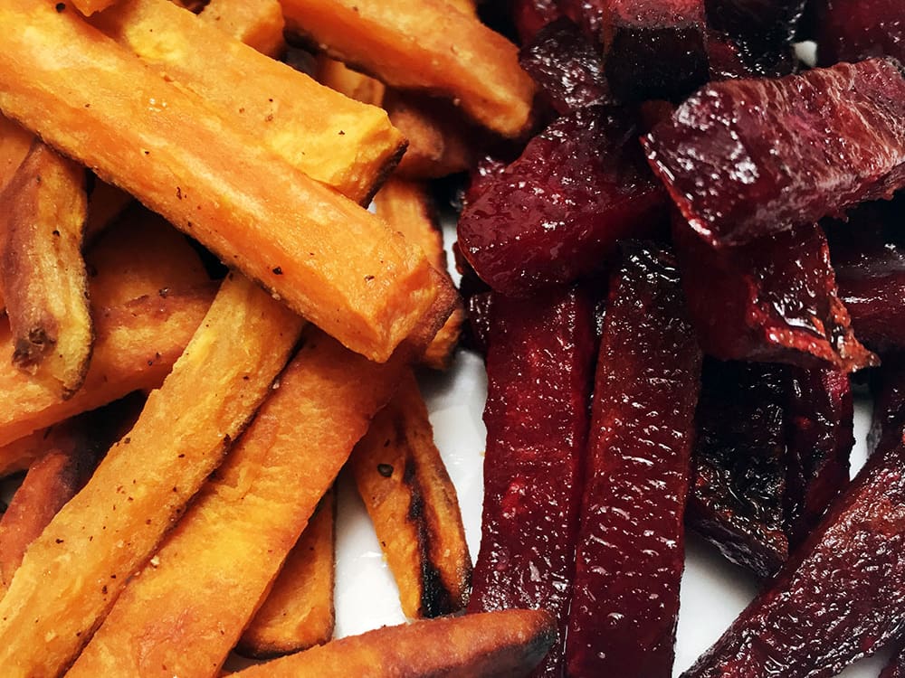 Frites de patate douce et betterave