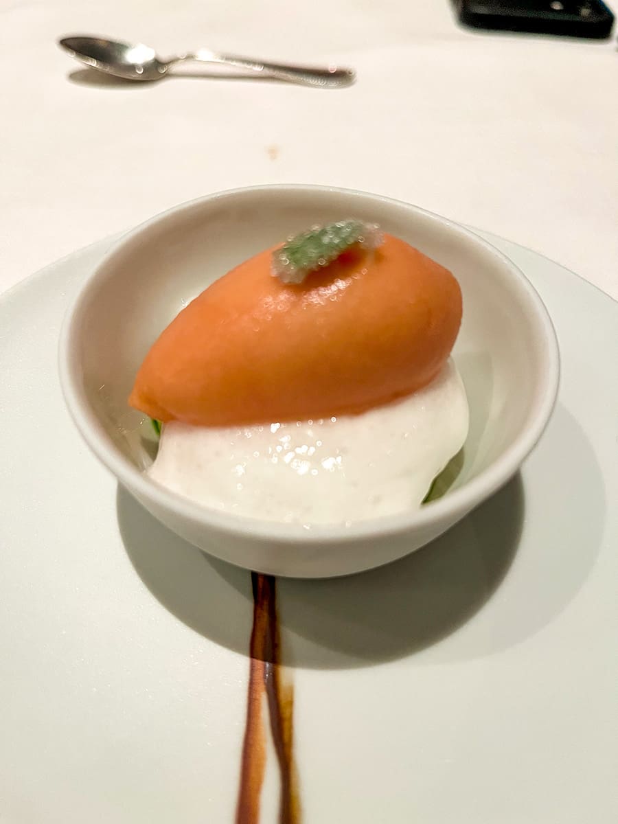 Premièrement, le pain et le beurre sont préparés maison (oui, du beurre maison). On nous a servi un velouté de chou-fleur en amuse-bouche qui était tellement lisse et crémeux qu’on aurait pu s’arrêter là et on aurait été satisfait.